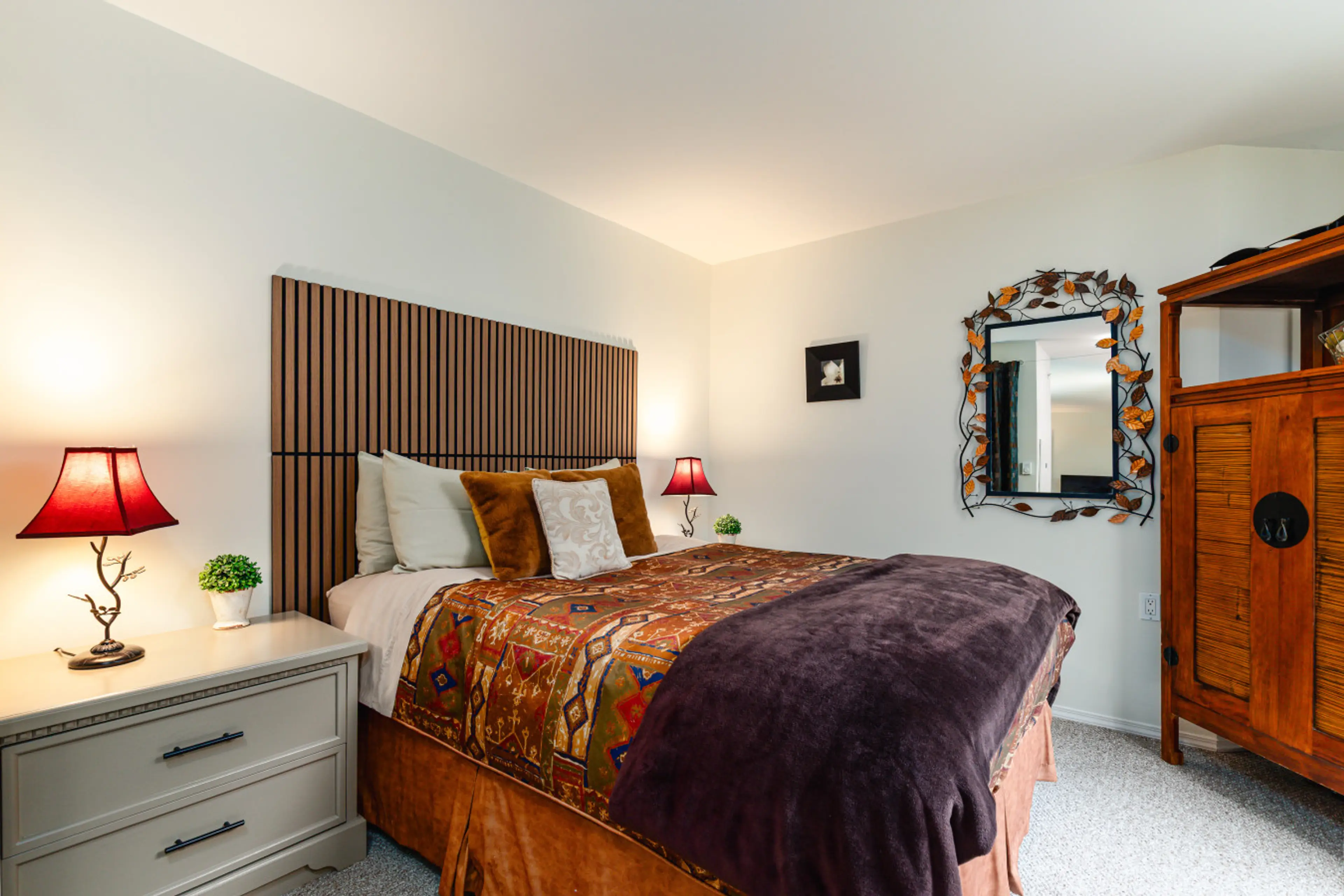 A well appointed unit but very small. “Bedroom” had no door just a curtain. Hot tub was under repair and did not open when expected so we never had access and the sauna was supposed to be open but never was. Kitchen was well equipped. Easy access to village, walking trails etc.