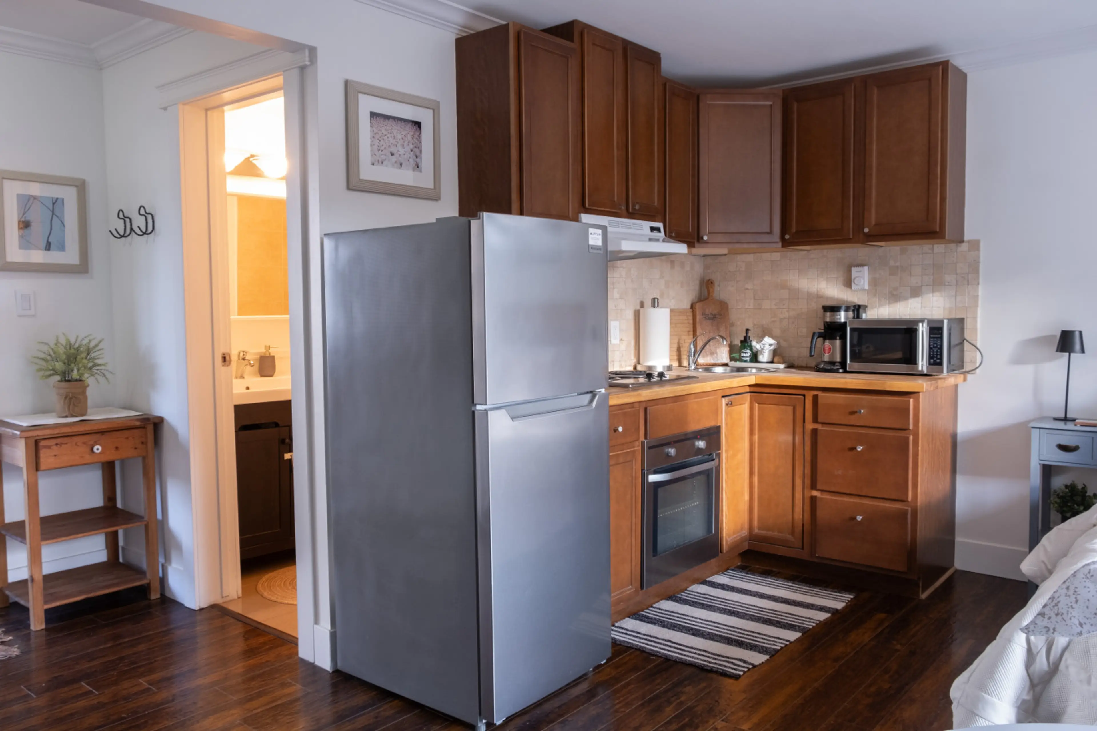 Really well kitted out suite. Really cozy and quiet neighborhood. Perfect weekend getaway. Would book again in a heart beat.